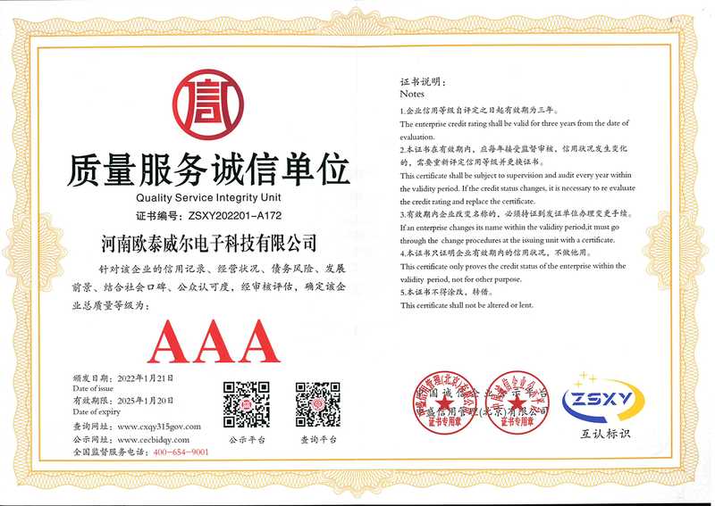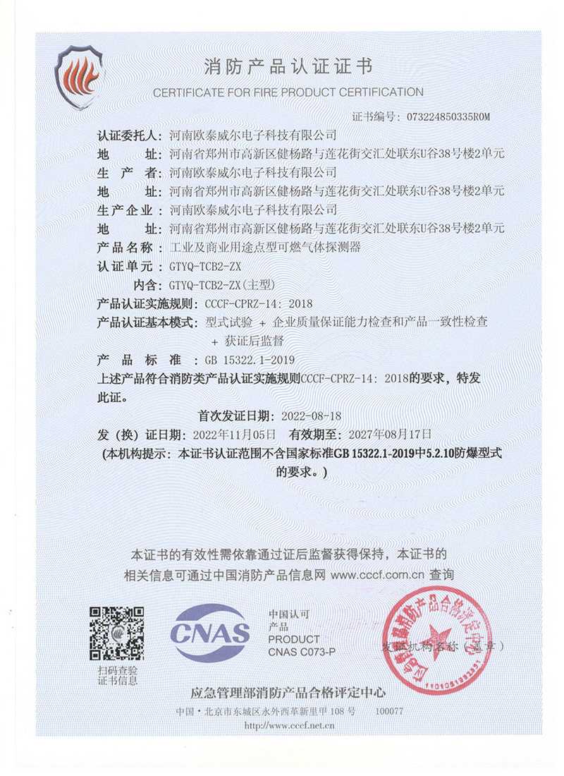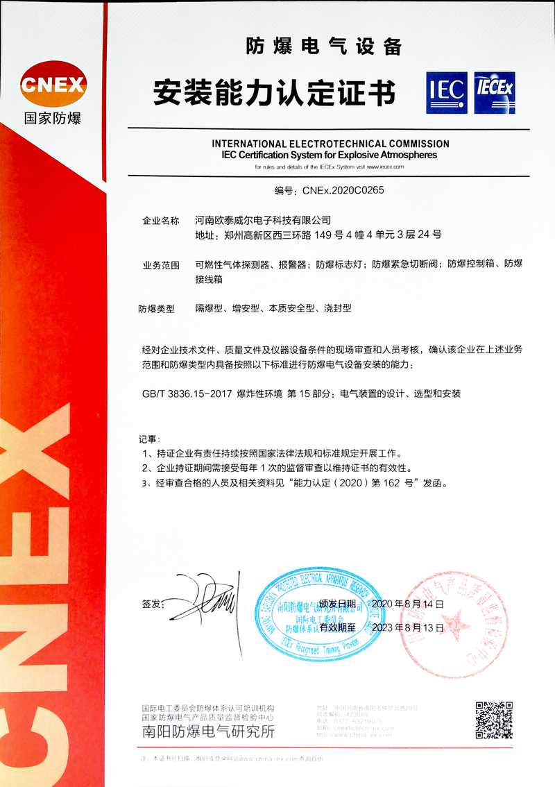 歐泰威爾作為國內(nèi)較知名的物聯(lián)網(wǎng)氣體探測儀器制造商,公司高度重視與國內(nèi)外大專院校的技術(shù)創(chuàng)新與學(xué)術(shù)成果交流,擁有專業(yè)氣體探測研發(fā)機構(gòu),專業(yè)質(zhì)檢生產(chǎn)工藝及相關(guān)檢測設(shè)備,技術(shù)力量雄厚,并不斷致力于產(chǎn)品品質(zhì)提升,公司及產(chǎn)品先后取得國家防爆電氣產(chǎn)品合格證、國家防爆電氣安裝、修理、維護資格證,國家應(yīng)急管理部消防產(chǎn)品CCCF認(rèn)證,國家計量器具形式批準(zhǔn)證書等并在國家權(quán)威部門形式注冊。